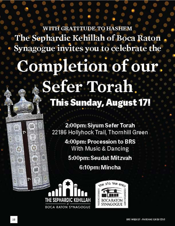 We are both tremendously grateful and fortunate to participate in the full breadth of BRS activities while simultaneously hosting minyanim and shiurim that celebrate our unique heritage. Our ‘Community within a Community’ is a vibrant and integral part of the Boca Raton Synagogue family.